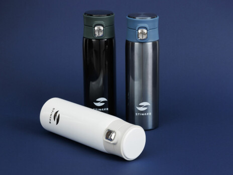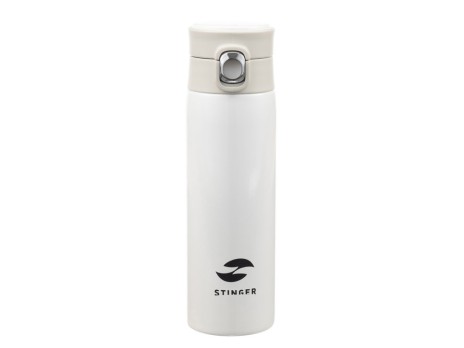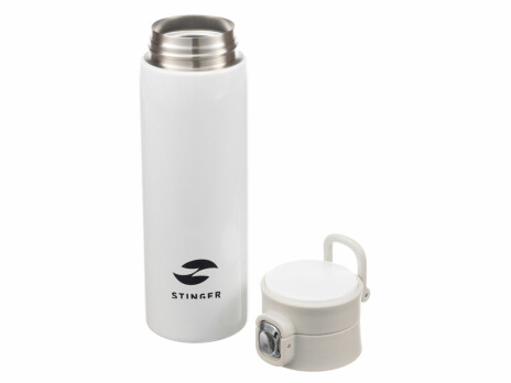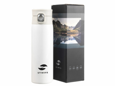 - Термокружка Stinger, 0,42 л, сталь/пластик/силикон, белый, 6,5 x 7,5 x 21,9 см