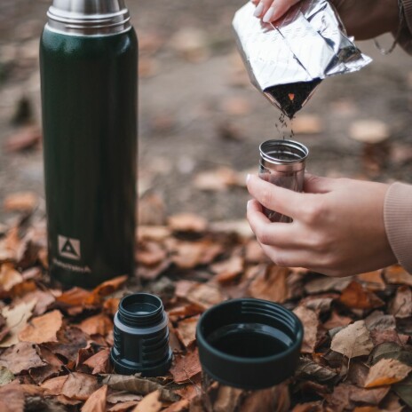 - Конструкция с двойными стенками и вакуумной изоляцией сохраняет температуру до 28 часов