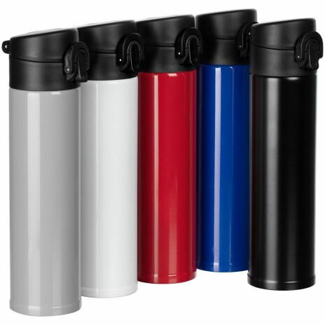 Термостакан Eimer в ровном цилиндрическом корпусе — эстетически приятная форма, на которую удобно делать круговое нанесение. Крышку с отщелкивающимся клапаном легко открыть одной рукой.