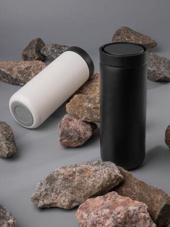 - Герметичная завинчивающаяся крышка с силиконовым уплотнителем и питьевой системой с клапаном — технология 360° позволяет одним нажатием открывать кружку и пить с любой стороны