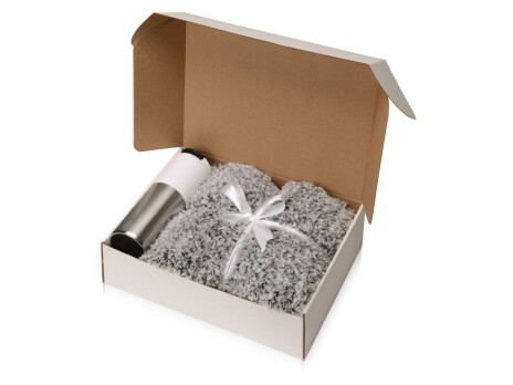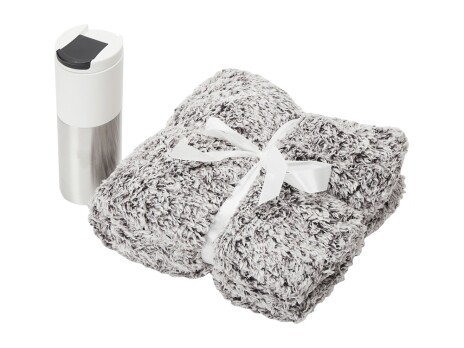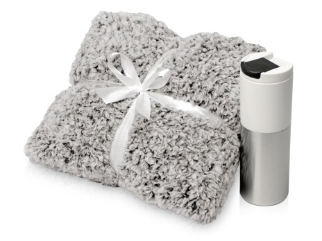- Цвет товара - плед- бело-черный, термокружка- белый/серебристый