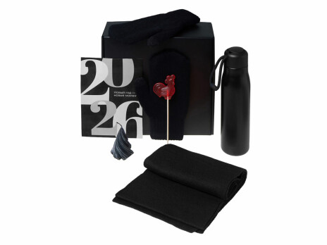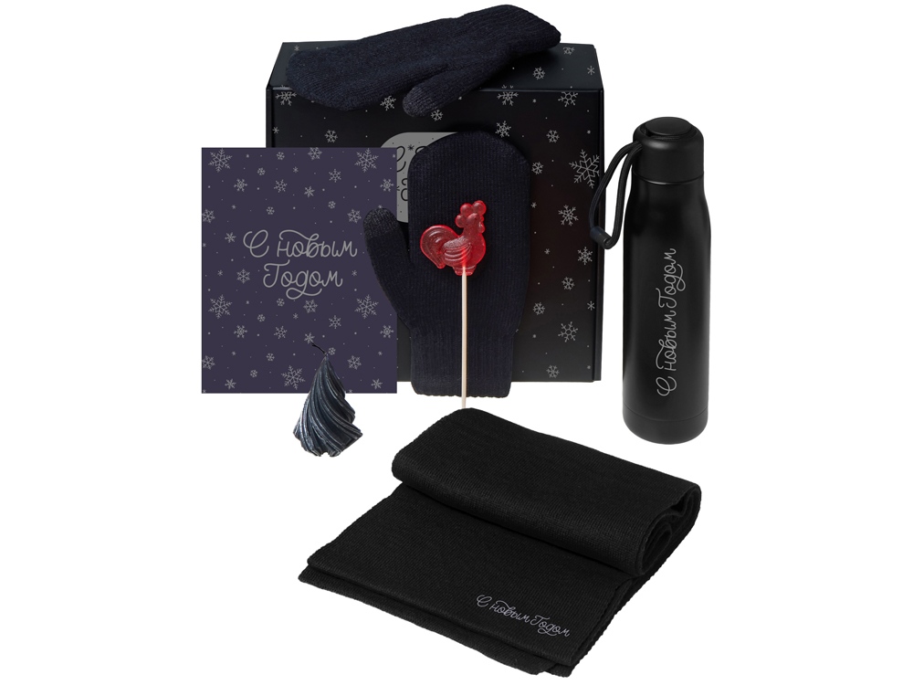 - Подарочный набор с варежками, шарфом и термосом, черный