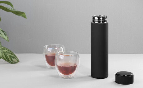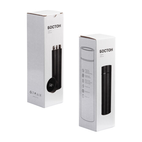- Термос "Бостон next" 500 мл с индикацией температуры, soft touch, сменная батарейка черный