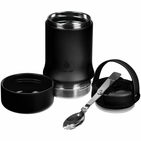 - Материал: корпус - нержавеющая сталь, 18/8; крышка - пластик, пищевой силикон; ручка - полиуретан, термопластичный; ложка - нержавеющая сталь