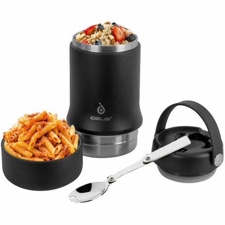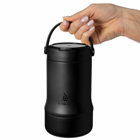 - Конструкция с двойными стенками и вакуумной изоляцией сохраняет содержимое холодным до 24 часов, горячим — до 12 часов