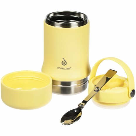 - Материал: корпус - нержавеющая сталь, 18/8; крышка - пластик, пищевой силикон; ручка - полиуретан, термопластичный; ложка - нержавеющая сталь