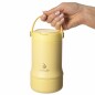 Tabenodo — универсальный многофункциональный термос для работы, школы, похода и путешествия. В компактном корпусе разместились ложка, тарелка и емкость для любимого блюда. Матовая поверхность приятна на ощупь, а силиконовая ручка удобна для переноски.