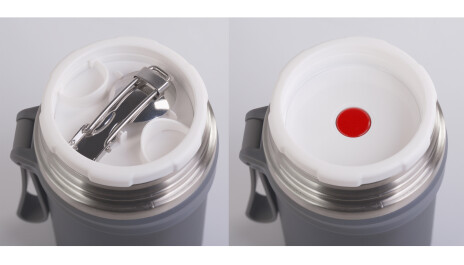 Конструкция термоса оптимальна для повседневного использования. Любителям домашней еды определенно понравится удобная ручка для переноса, складная ложка, которая идет в комплекте, и - практичное износостойкое покрытие. Специальная порошковая краска не только защищает термос от механических повреждений, но и проста в уходе. Зернистая фактура поверхности отлично маскирует отпечатки пальцев.