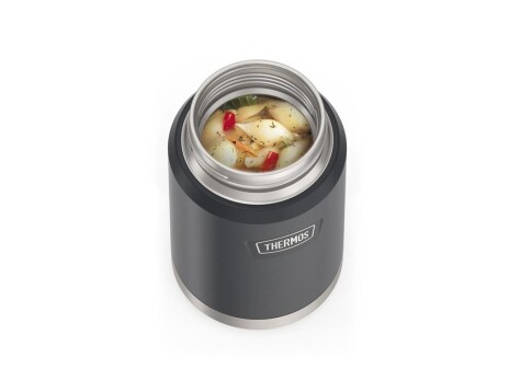 Юбилейная коллекция ICON™ легендарного бренда THERMOS пополнилась солидным представителем – вместительным термосом для еды IS-301 GT. В его создание заложены инновационные технологии, традиционное с 1904 года качество, безупречный стиль и неизменно желание сделать жизнь людей комфортнее. Эти принципы сделали коллекцию ICON™ узнаваемой, всеми любимой и поистине культовой. Ежедневное использование термоса поможет сформировать полезную привычку здорового питания, отказаться от фаст-фуда и существенно сэкономить семейный бюджет. Вкусовое удовольствие от домашних блюд дополняется эстетическим: благородным внешним видом термос обязан оригинальному дизайну, сочетающему гармонию прямых линий и природных форм, глубокому цвету тёмного гранита. Деликатным украшением служит логотип, нанесённым методом лазерной гравировки. Статусность коллекции серии ICON™ подчёркивает фирменная упаковка цвета графита с серебристым тиснением, что придаёт термосу как подарку особую торжественность. Уникальным и неповторимым термос делают четыре новых патента на особенности конструкции, разработанные производителем для максимального удобства при использовании изделия. Оригинальная винтовая пробка с системой сброса давления Dura-Guard™ облегчает открывание термоса с горячим содержимым, что особенно важно при использовании термоса детьми. Специальный круговой рельеф в её верхней части создаёт дополнительное удобство при открывании или закрывании термоса в перчатках. Своевременно пообедать или перекусить позволит складная ложка из пищевой нержавеющей стали. Для её гигиеничного хранения предусмотрена специальная ниша Stow-Away™ с системой фиксации в пробке термоса. Благодаря размеру горлышка поесть можно из термоса или переложить еду в крышку-чашку. Прочный корпус и усиленное дно защищает от ударов при случайном падении, а противоскользящее силиконовое основание Griptec™ делает термос устойчивым на любых поверхностях. Сохранению безупречного внешнего вида термоса на многие годы способствует многослойное порошковое полимерное покрытие True-Coat™, устойчивое к механическим повреждениям и воздействию высоких температур. Поэтому термос прост в уходе и его можно мыть в посудомоечной машине, как и все остальные детали. Все материалы, из которых изготовлен термос, безопасные, экологичные, прочные и термостойкие, не содержат бисфенол А (BPA free), не выделяют и не поглощают посторонние запахи. Термос полностью соответствует Международному стандарту качества EN12546:1-2000. Термос обеспечит запасом еды на весь день – его объём рассчитан на 3-4 приёма пищи (3-4 полноценные порции). Уникальные технологии производства, вакуумная термоизоляция, материалы премиум класса и особенности конструкции создают самое главное достоинство термоса – сохранять для вас еду вкусной и горячей, свежей и аппетитной в течение активного дня.