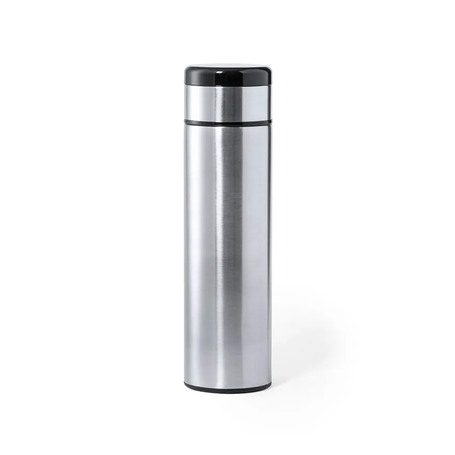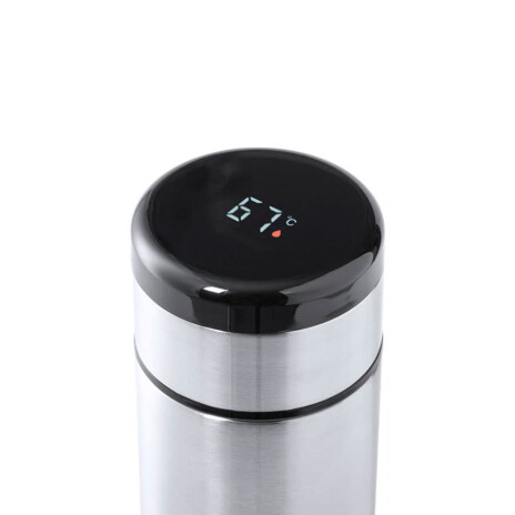 Термос из нержавеющей стали емкостью 420 мл с датчиком температуры и сенсорным экраном, встроенным в крышку. Двойные стенки отлично сохраняют температуру напитка. Термос имеет навинчивающуюся крышку и ситечко. Индивидуальная упаковка - белая картонная коробка с изображением продукта. Батарейка в комплекте.