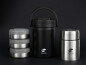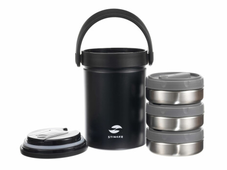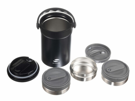 Термос ланч-бокс Stinger, 1,7 л, широкий, сталь, чёрный, три контейнера, 16,1 x 14,9 x 21,5