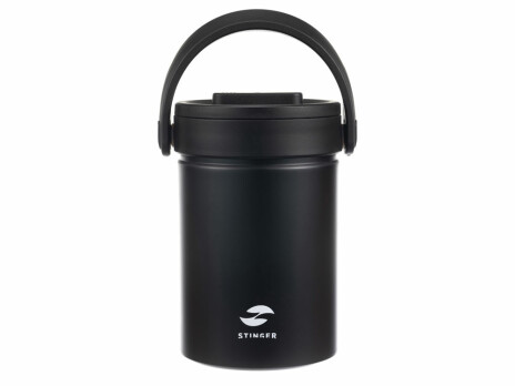 - Термос ланч-бокс Stinger, 1,7 л, широкий, сталь, чёрный, три контейнера, 16,1 x 14,9 x 21,5