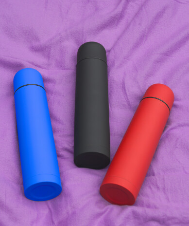 Внешняя стенка термостакана изготовлена из нержавеющей стали с уникальным прорезиненным напылением soft-touch, а внутренняя стенка выполнена из высококачественной пищевой, нержавеющей стали. Корпус изделия персонализируется по окружности встык. Термос оснащен пробкой с клапаном, которая позволяет наливать напиток одним нажатием.