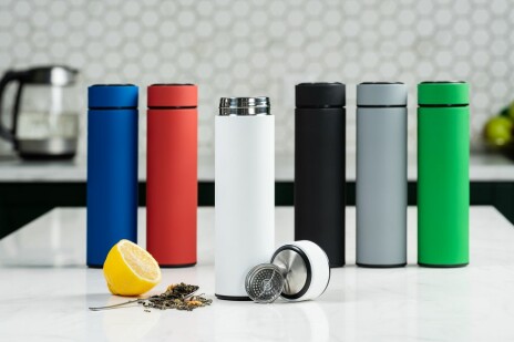 Компактный термос Percola пригодится и в городе, и на природе. Съемное ситечко поможет заварить чистую чашку чая или кофе, а цилиндрический корпус даст широкие возможности для маркетинговых сообщений.