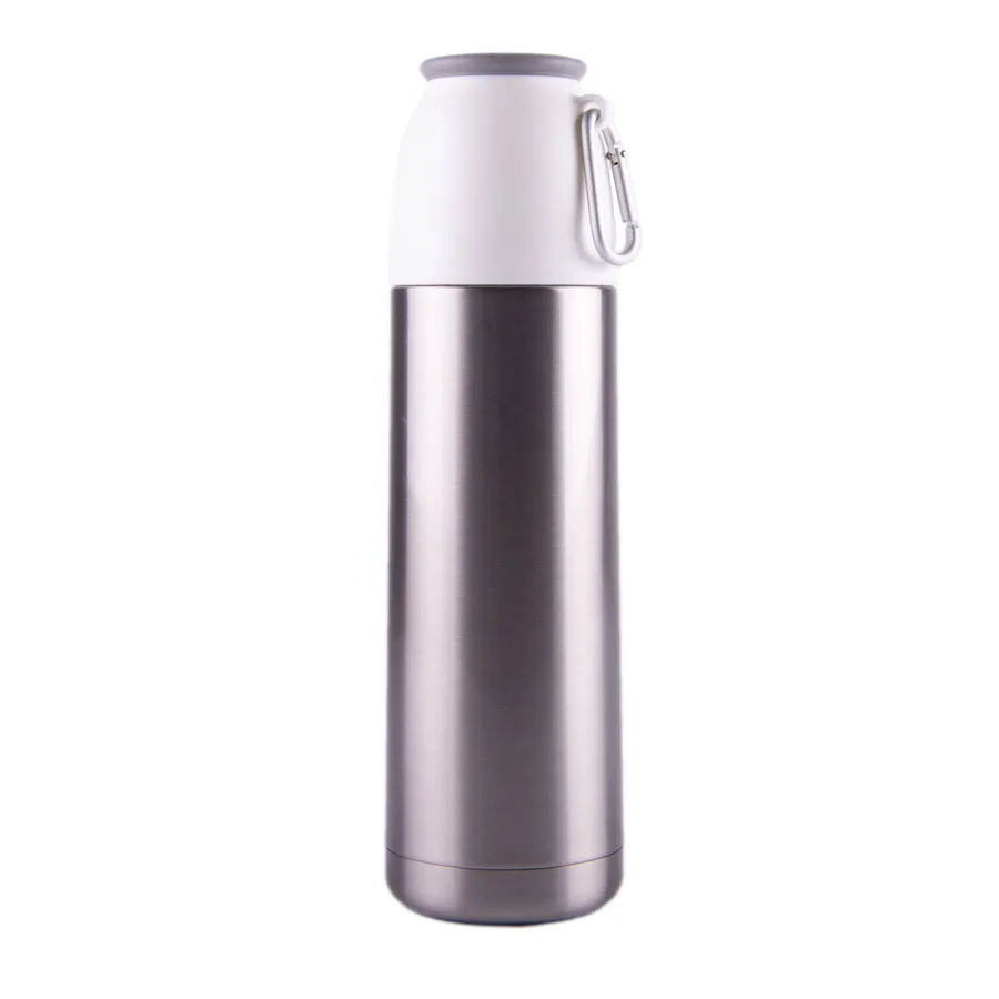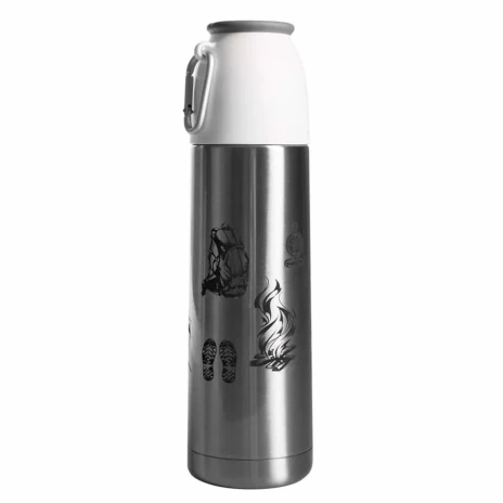 Вакуумный термос Escape с двойными стальными стенками. На крышке термоса – карабин. Удобно брать в поход, пристегнув к рюкзаку (не занимает место внутри рюкзака). Сохраняет тепло до 12 часов в зависимости от температуры окружающей среды.