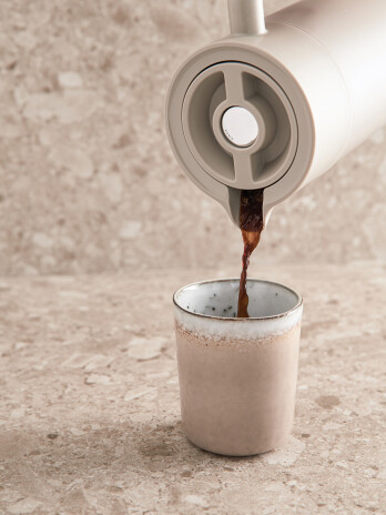 Классический термос в скандинавском стиле. Нержавеющий и небьющийся, с кнопкой и ручкой из орехового дерева. Удовольствие от каждого использования. Широкое горлышко позволяет легко наполнять термос и мыть его. Объем 1,2 л.