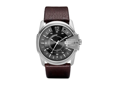 - Цвет товара - корпус- стальной, циферблат- темно-серый, крепление- коричневый