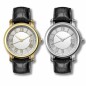 - Размеры: женская модель: диаметр корпуса 3 см, ширина ремешка: 1,6 см; мужская модель: диаметр корпуса 4,1 см; ширина ремешка 2,2 см