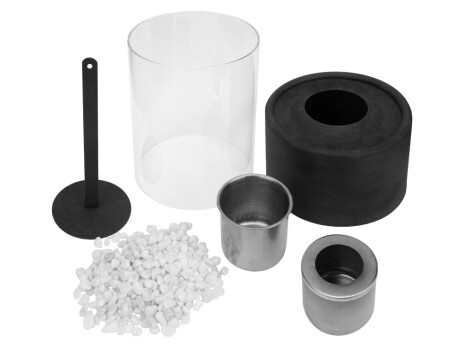 - Комплектность - биокамин со стеклянной колбой- 1шт, емкость для топлива- 1шт, декоративные камни, заглушка для тушения пламени- 1шт, инструкция по применению