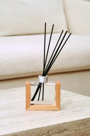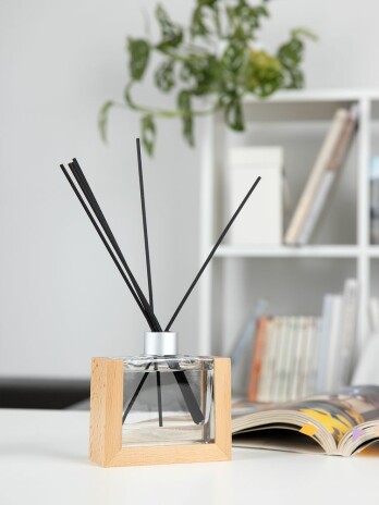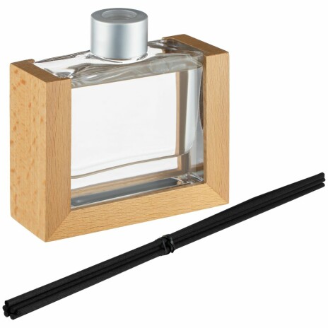- Материал: флакон - стекло, палочки из файбера; подставка для флакона - дерево