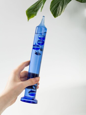 Термометр Галилео в цветном стеклянном корпусе с прочным плоским основанием — это не только интересный и полезный сувенир, но и элемент современного дизайна.