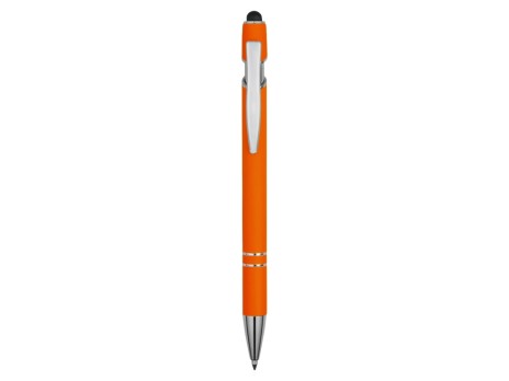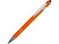 - Ручка металлическая soft-touch шариковая со стилусом «Sway», оранжевый/серебристый