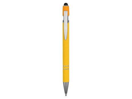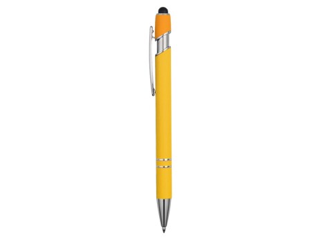 - Ручка металлическая soft-touch шариковая со стилусом «Sway», желтый/серебристый