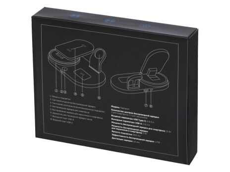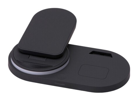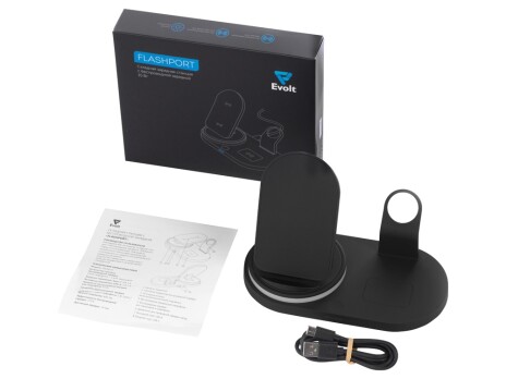 - Складная зарядная станция с беспроводной зарядкой «Flashport», 15 Вт, черный