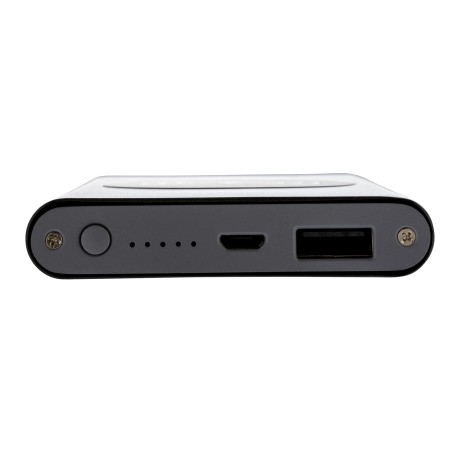 Тонкий беспроводной внешний аккумулятор 5W со встроенной литиево-полимерной батареей на 4 000 мАч изготовлен в стильном и надежном алюминиевом корпусе. Оборудован кнопкой включения / выключения и индикатором уровня заряда аккумулятора. Напряжение на выходе составляет 5V/2,1, на входе - 5V/1.5A. Выход беспроводного напряжения – 5W.