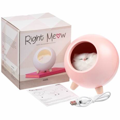 - Беспроводная лампа-колонка Right Meow, розовая