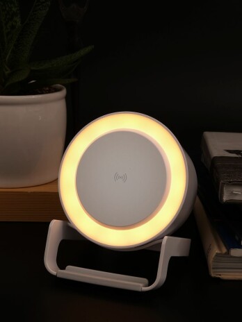 - Лампа с колонкой и беспроводной зарядкой moonLight, белая