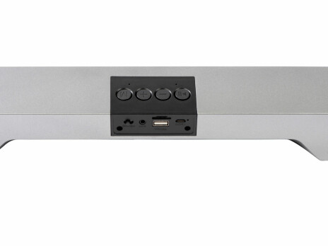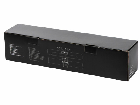 Портативная стереоколонка имеет два динамика по 3 Вт каждый, которые стереофонически распределяют звук. Саундбар воспроизводит музыку с USB-флешки и с SD-карты, а также по Bluetooth. - Cтереозвучание - Много возможностей нанесения — как полей, так и типов - Воспроизведение по Bluetooth, а также USB-флешки и с SD-карты