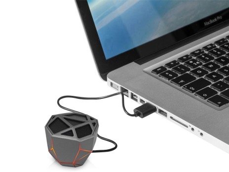 Беспроводная портативная колонка “Geo” с функцией расширенных басов изготовлена в дизайнерском стиле low-poly. Форма революционного Bluetooth-динамика напоминает мистический кристалл, а подсветка различных цветов (белая, синяя, красная, зеленая, оранжевая) добавляет таинственности. При этом ее яркость зависит от воспроизводимой музыки. Подсветку можно легко поменять, сделав три быстрых нажатия на кнопку включения и произойдет настоящая магия у вас в руках. Динамик соединяется с любыми устройствами, поддерживающими передачу данных по Bluetooth, поэтому подходит для большинства смартфонов и планшетов, например, iPhone, iPad. Версия Bluetooth - 4.2. Колонка имеет литий-полимерную батарею (450 mAh), которая эффективно сохраняет заряд, а также безопасна в использовании. Благодаря ей беспроводной динамик “Geo” может работать до 4 часов без подзарядки, а на среднем уровне воспроизведения звука до 7 часов. Динамик настолько компактный, что помещается на ладони и весит всего 97 г. Он также имеет покрытие софт-тач, поэтому, если вы возьмете колонку в руки, то не захотите ее выпускать. На корпус колонки можно нанести гравировку, которая будет вскрываться при помощи подсветки. Идеальный презент не только для меломанов, но также для людей, которые любят инновационные “умные” гаджеты. Беспроводная колонка «Geo» отлично дополняет серию электронных подарков от Xoopar - мышь “Geo Mouse” и портативное зарядное устройство “Geo Slim”.