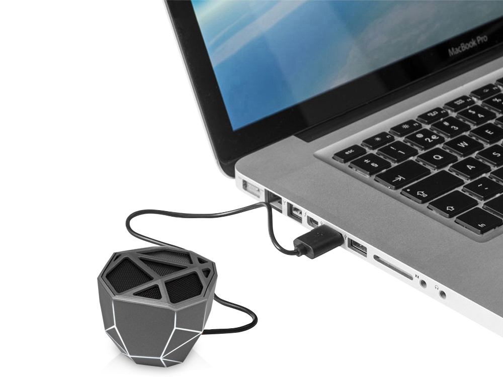 Беспроводной портативный динамик «Geo» — ультрасовременное решение для прослушивания аудио с функцией расширенных басов. Дизайн колонки выполнен в стиле low-poly, главная особенность которого — необычная геометрия форм. Визуальный эффект усиливается одноцветной подсветкой колонки, яркость которой меняется в зависимости от интенсивности звука. - Расширенные басы. - Воспроизведение до 7 часов. - Ритмичная подсветка. - Вес 97 г. Бизнес-подарок, который впечатлит и среднестатистического пользователя, и истинного техногика.