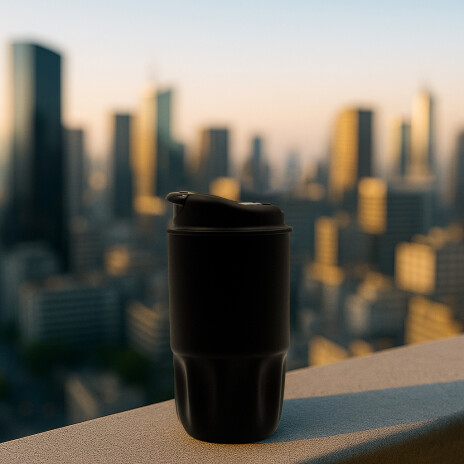 Термостакан от бренда Cofer имеет вакуумную конструкцию в уникальном дизайне и изготовлен из нержавеющей стали.