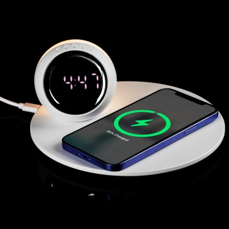 - Станция беспроводной зарядки с часами и подсветкой GlobeBee, белая