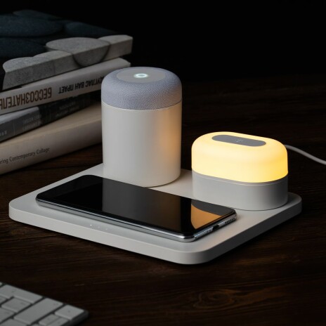 - Станция беспроводной зарядки с колонкой и ночником Trilogy, белая