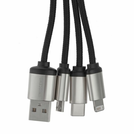 Кабель предназначен для зарядки устройств с разъемами Type-C, Micro USB и Lightning. Передача данных не поддерживается.