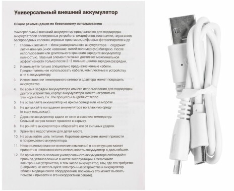 - Комплектный кабель Micro USB, Type-C, Lightning (iPhone 5–14) неприменим для заряда iPhone 16,17 и 15Pro европейских версий. Претензии по совместимости вложенного кабеля со смартфонами не принимаются. Необходимо использование рекомендуемого Apple кабеля USB-A/USB-C.