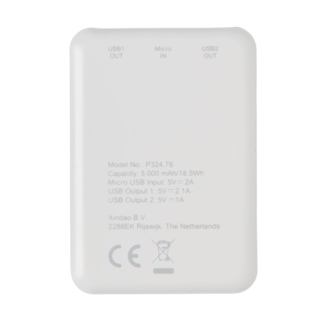 Куда бы вы ни пошли, ваш внешний аккумулятор всегда будет под рукой! Благодаря своей ультра-компактности, этот внешний аккумулятор емкостью 5 000 мАч с легкостью поместится в ваш карман. Корпус устройства сделан из легкого ABS. Энергии полностью заряженного литий-полимерного аккумулятора высокой плотности класса А хватит, чтобы зарядить ваш смартфон до трех раз. Двойной USB разъем позволит заряжать два устройства одновременно. Удобные световые индикаторы отображают уровень заряда, напоминая о необходимости подзарядить устройство. Напряжение на входе: 5V/2A; напряжение на выходе USB 1: 5V/2A, USB 2: 5V/1A.