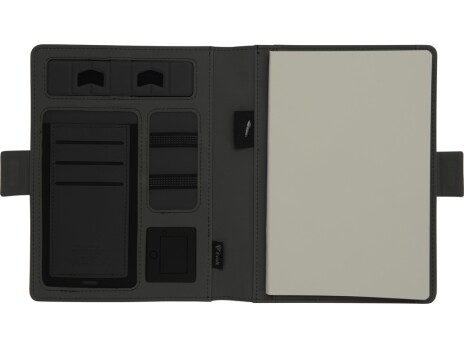 Органайзер «Powernote» — стильный бизнес-подарок, который в полной мере воплощает идею многофункциональности. С его помощью можно заряжать гаджеты как беспроводным способом, так и через кабель, эргономично хранить целый ряд предметов — от ручек и проводов до кредитных карт — и даже делать записи. Элегантность внешнего вида дополняется приятной текстурой обложки из мягкого полиэстера и высоким качеством внутренней отделки с элементами soft-touch покрытия. Практичный и технологичный аксессуар, который в состоянии заменить сразу несколько вещей. - Встроенный пауэрбанк емкостью 5000 мАh. - Возможность зарядки как беспроводным способом, так и через кабель. - Удобная магнитная застежка. - Качественные материалы. - Отделение для телефона. - Блокнот для записей 64л.