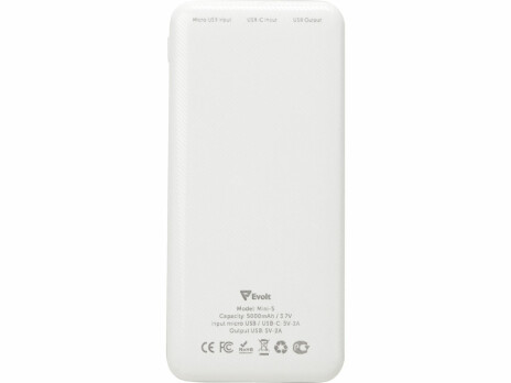 - Внешний аккумулятор Evolt "Mini-5", 5000 mAh, белый