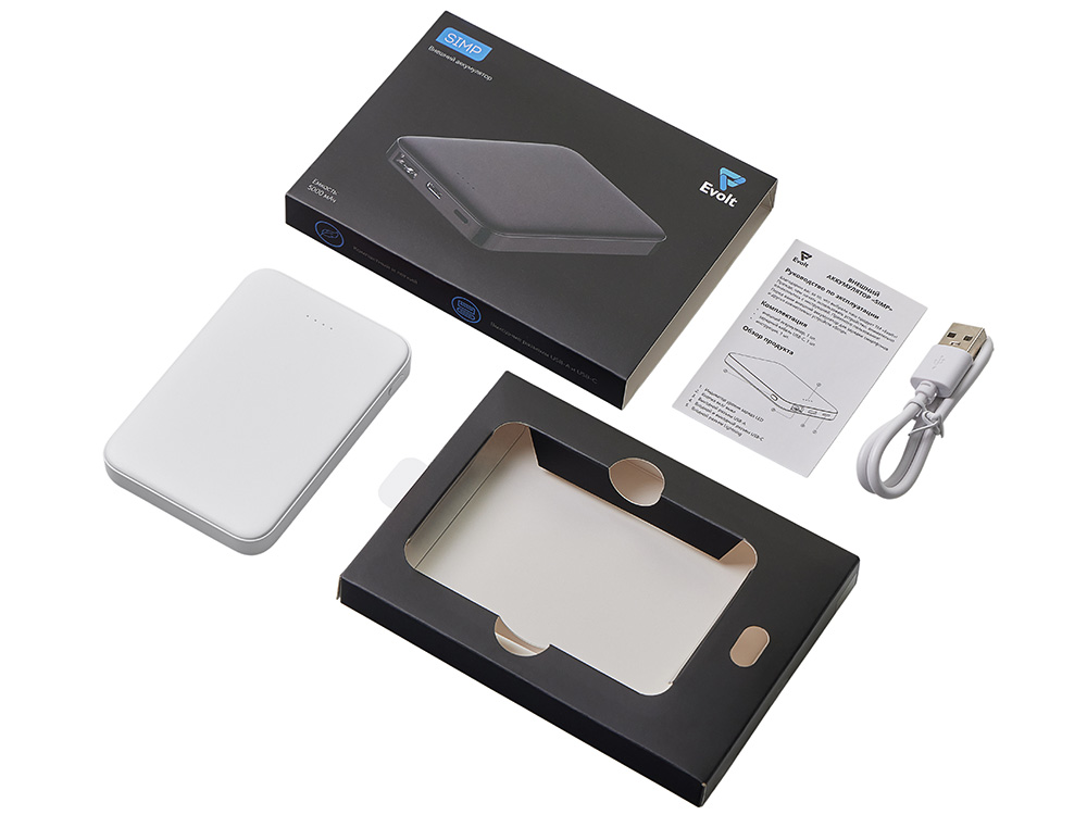 - Комплектность - портативное зарядное устройство, кабель USB Type-C