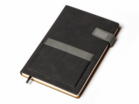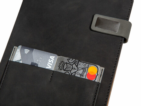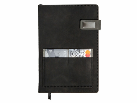 - Бизнес блокнот А5 "Freya" с клапаном и карманом для визиток, твердая обложка, 128 листов, черный и свет