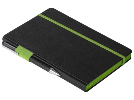 Бизнес блокнот "Bossy" с ручкой, черный и зеленое яблоко