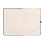 Размер: 130х210 мм Переплет: твердый Обложка: термоактивный PU Sensi, по фактуре и тактильно напоминающий лайковую кожу, невероятно приятный на ощупь Отделка: жаккардовая резинка 12 мм и пенхолдер в тон обложки Форзац нахзац: кремовый Блок: недатированный Разлиновка: в линейку Количество страниц: 256 Углы блока: скругленные Цвет бумаги: кремовый Плотность бумаги: 70г м2 Ляссе: в тон обложке Карман для визиток: есть Упаковка: фирменный сливбокс thINKme