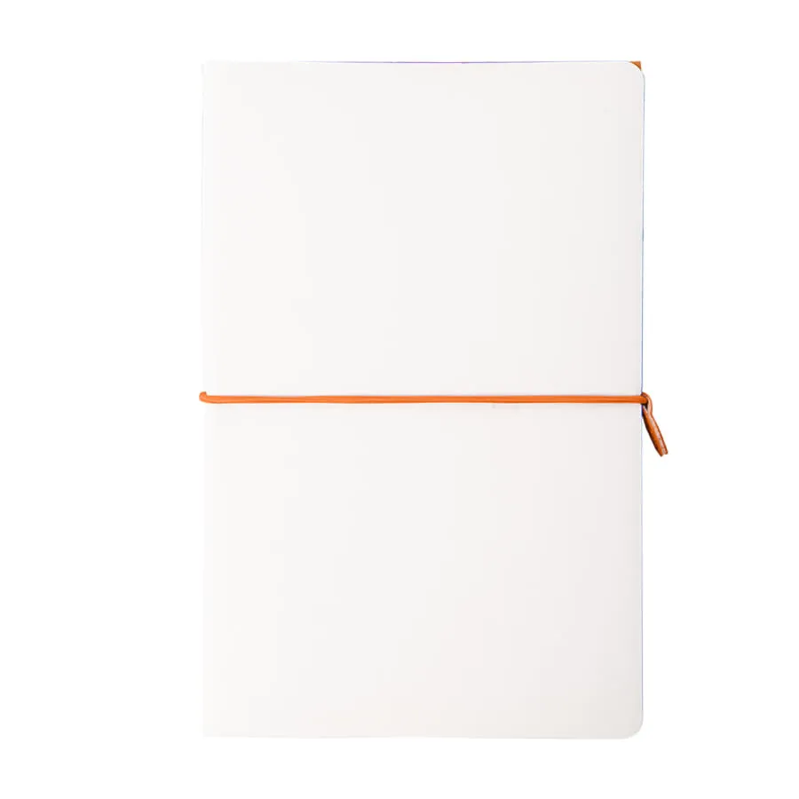 с оборотной стороны - яркий PU Silk Plus (цвет, близкий к pantone 1645C). - два разных внутренних блока по 96 страниц соединены под одной обложкой: