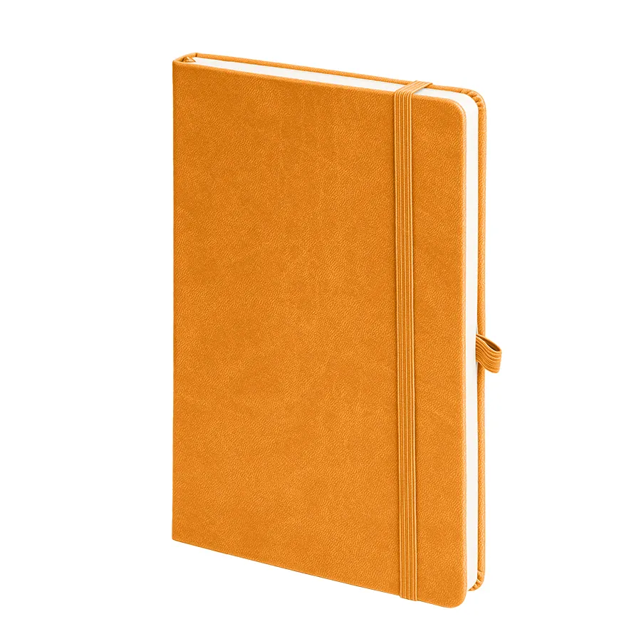 Самый популярный блокнот в твердой обложке, с эластичной резинкой, пенхолдером и ляссе в тон. Термоактивный классический PU материал Velvet Цвет обложки, близкий к Pantone 158C Внутренний блок 256 страниц в линейку Идеально скругленные углы блока Перфорированные 8 последних листов Кремовая FSC бумага 70г м2 Карман для мелочей Индивидуальная упаковка: фирменный сливбокс thINKme