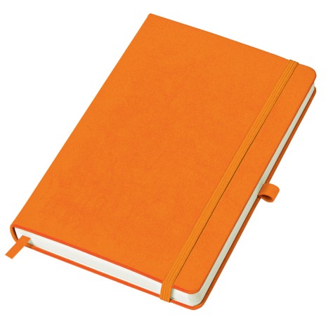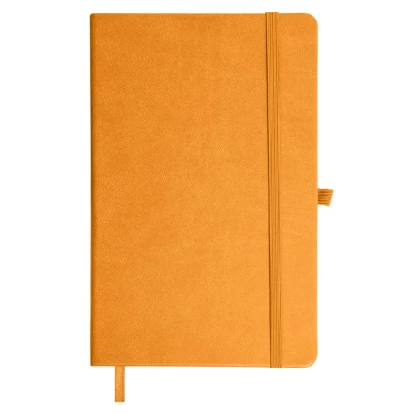 - Бизнес-блокнот "Justy", 130*210 мм, оранжев, твердая обложка, резинка 7 мм, блок-линейка