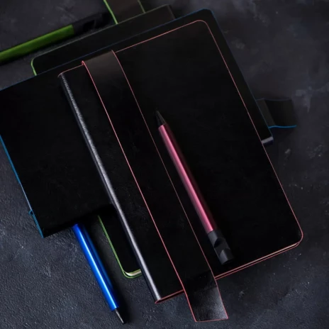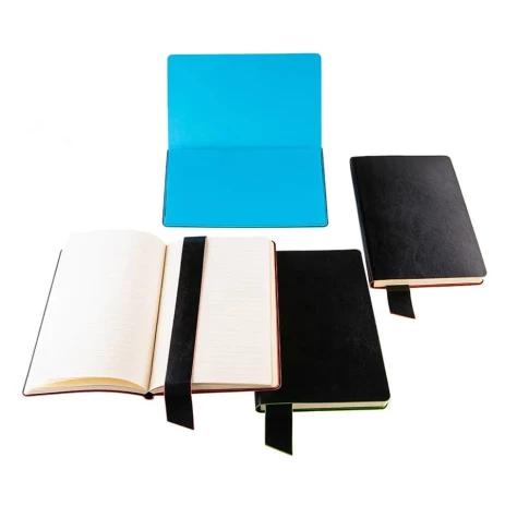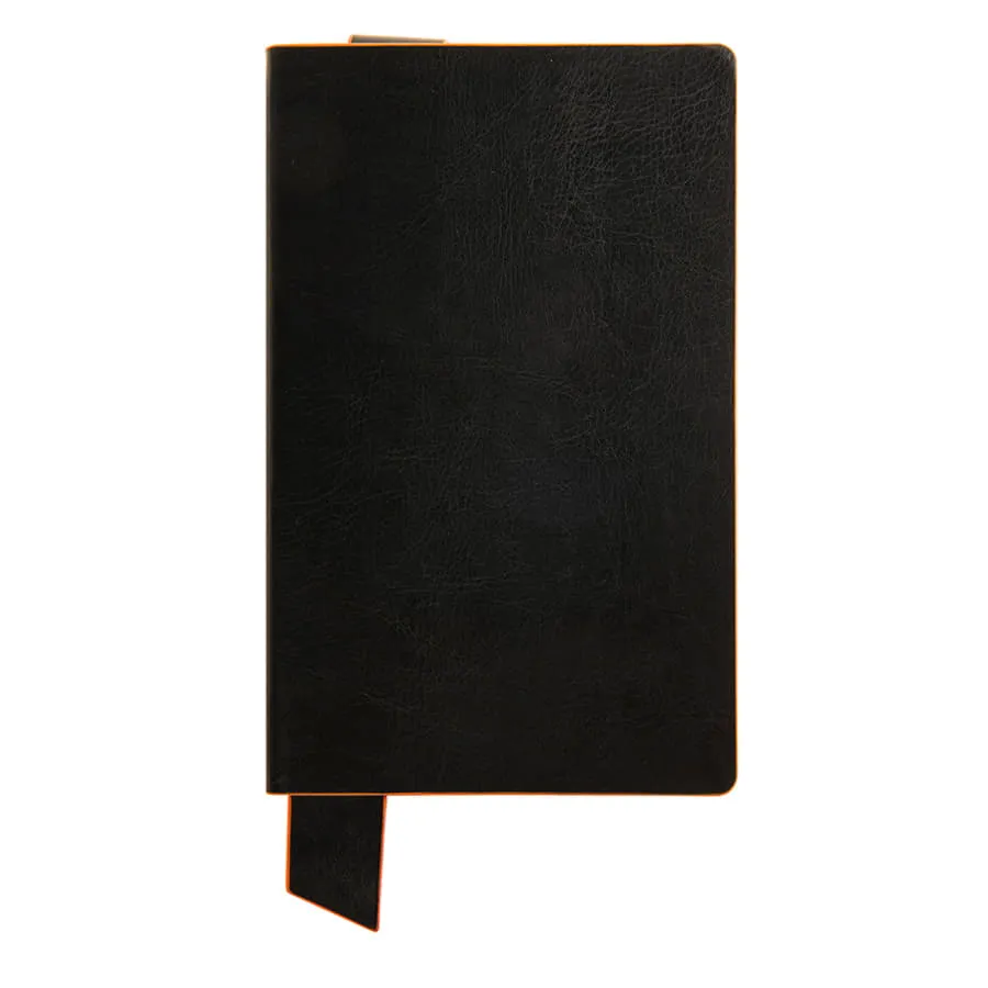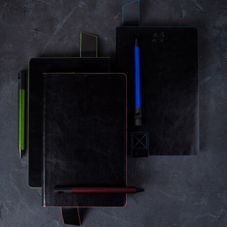 Имитирующая натуральную кожу мягкая PU обложка Bondy черного цвета по краям имеет яркую цветовую отделку.